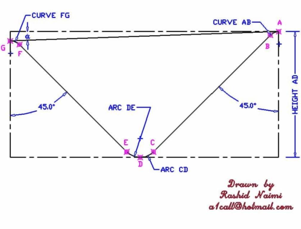 The arc CD is a 45° arc and is tangent to the line BC, and it's a